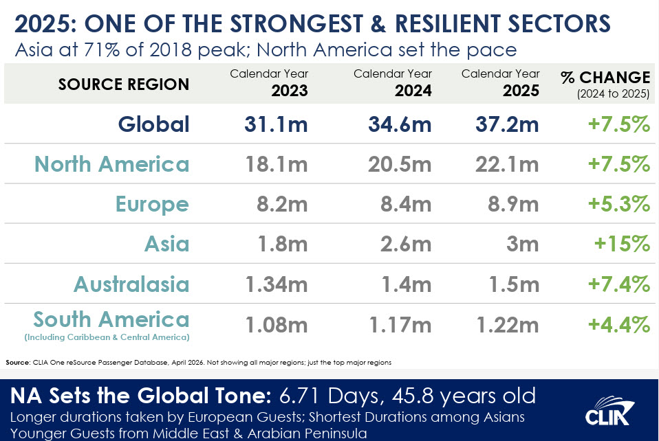 - 37.2 million cruise passengers sailed in 2025